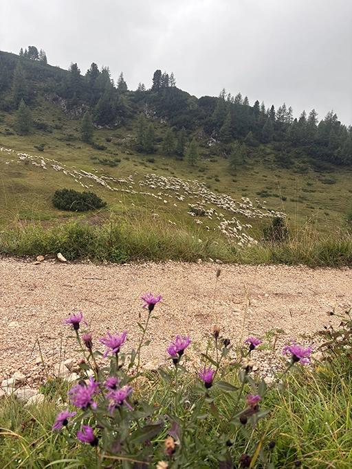 We passed a herd of sheep and goats which were making the most adorable bleating sounds over their tinkling bells , followed some gravel paths and undulating rocky paths which are the standard in the Dolomites.