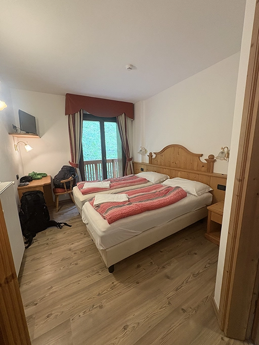 We splurged on the spa at Passo Staulanza for bit of luxury relaxation before dinner. Tanji and Kent showed up, looking somewhat bedraggled as it had started raining again. After freshening up, we shared another great dinner with them.