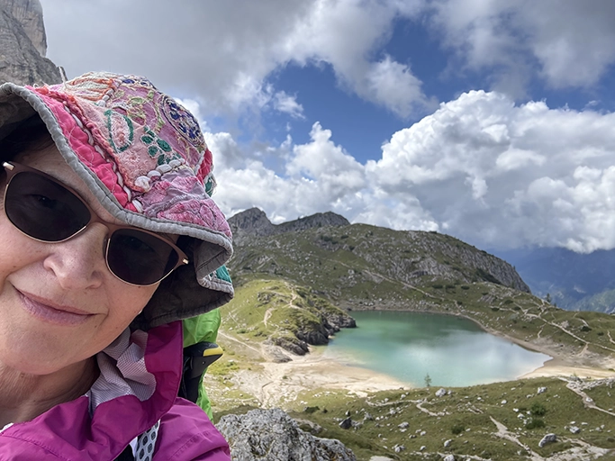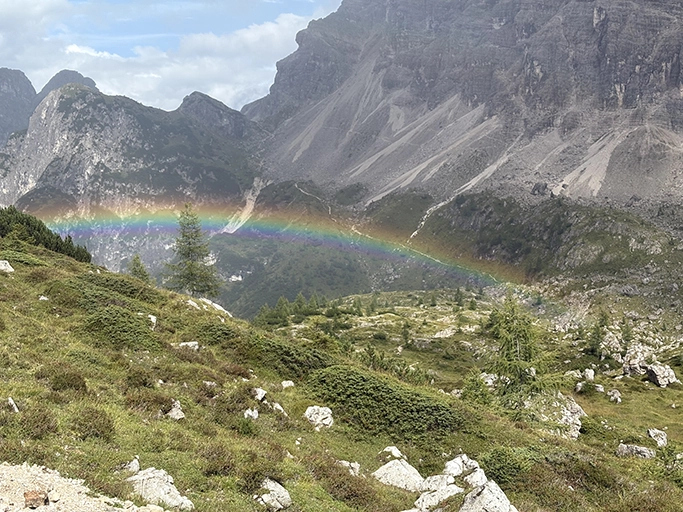 Today’s hike was characterised by a lot of uphills including a torturous final ascent to our rifugio for the night. I got there in the end with the help of a cat. In the meanwhile, there were views, views and more views, a lake and a rainbow!